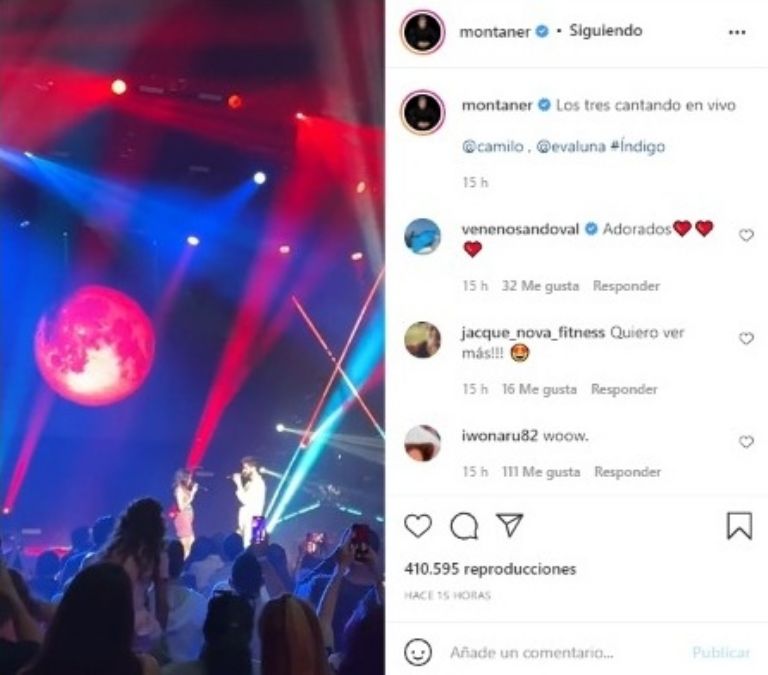 Junto a las imágenes donde se ve a la pareja muy feliz y enamorada en pleno show, Montaner escribió: "Índigo cantando por primera vez" y "los tres cantando en vivo".
