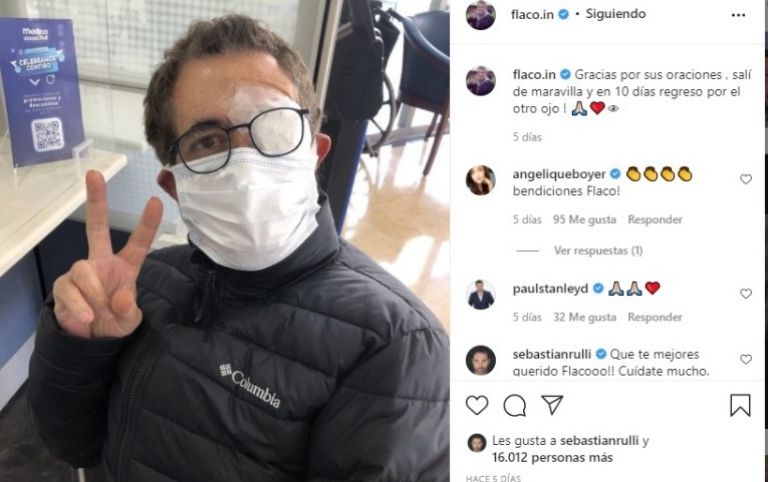 Fue con una fotografía publicada en su perfil de Instagram en la que el histrión aparece justo sobre una silla de ruedad y el ojo izquierdo parchado, señalando que volvería en 10 días para que le operen el otro ojo.
