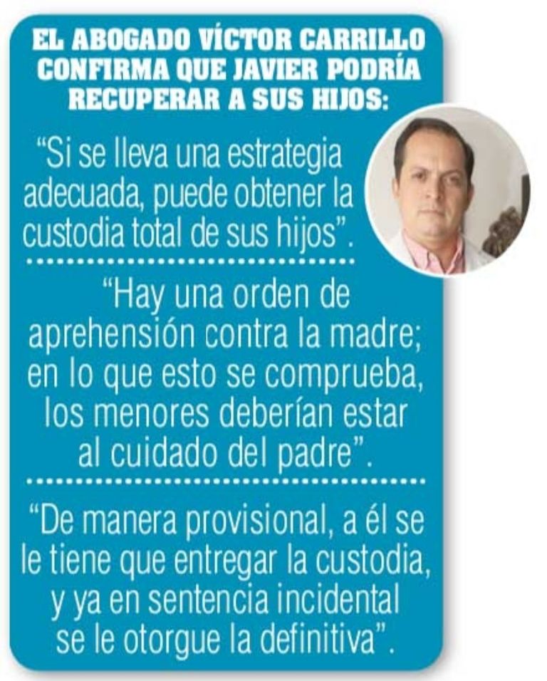 Agregó que los abogados de Javier han seguido en la lucha y con este escándalo las piezas se moverían a favor de su exesposo quien podría probablemente obtener la custodia y patria potestad de los cuatro hijos en común.