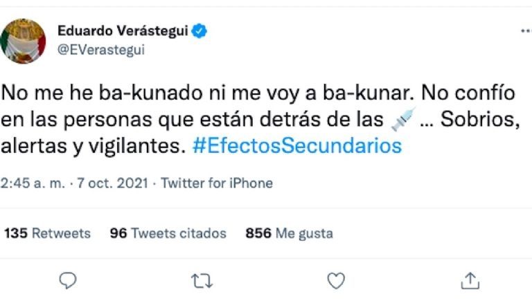 A través de su cuenta de Twitter, el mexicano compartió un polémico mensaje en el que asegura que no confía en las vacunas anticoronavirus y por ello tomó la decisión de aplicarse ninguna, alegando que "el diablo anda buscando a quien devorar".