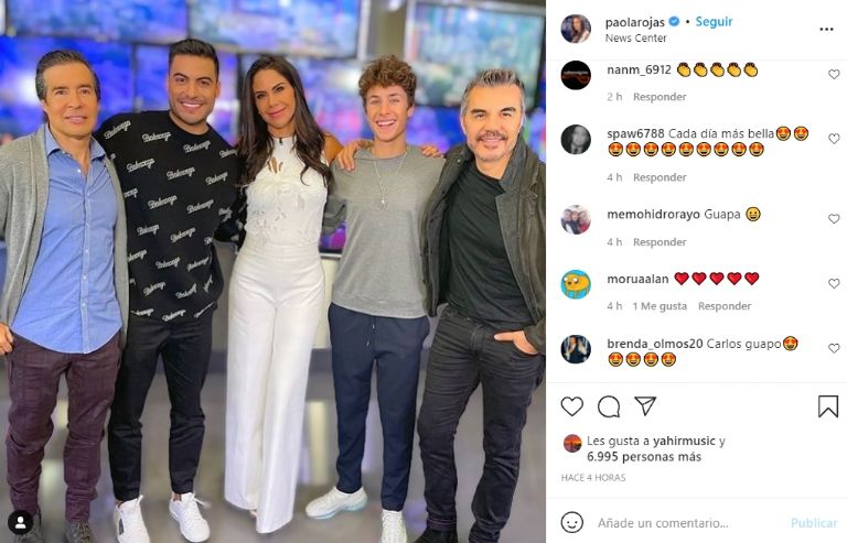 A través de su cuenta oficial de Instagram, Rojas compartió una fotografía en la que aparece posando desde el set de su noticiero mientras a lado tiene a Carlos Rivera, Juanpa Zurita, Adrián Uribe y el productor Miguel Ángel Fox.