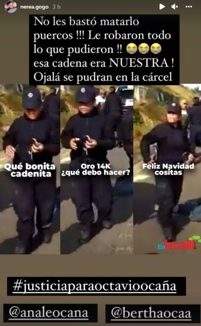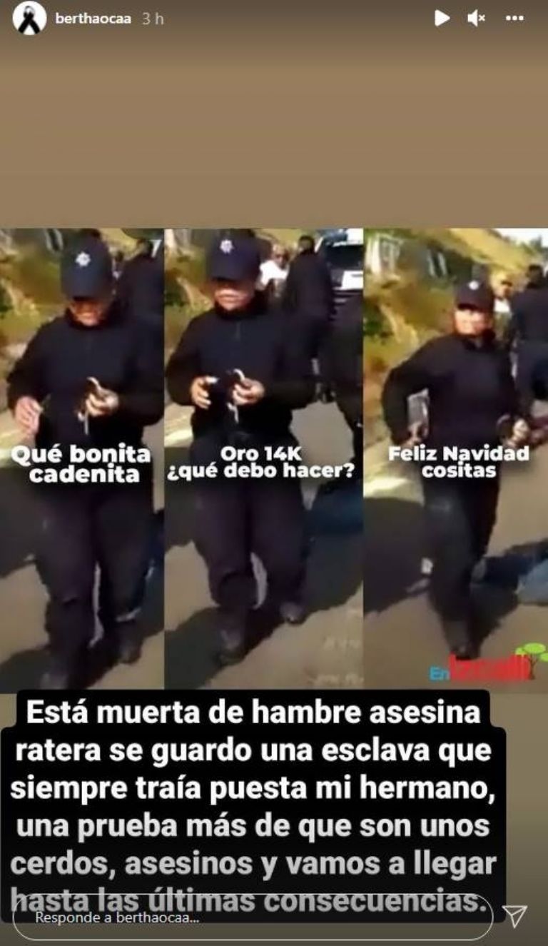 Mediante sus historias de Instagram, tanto Bertha Ocaña y Nerea Godínez, hermana y pareja, respectivamente, acusaron a una oficial de hurtar la pieza de joyería del hoy fallecido, momento que supuestamente quedó grabado en video.