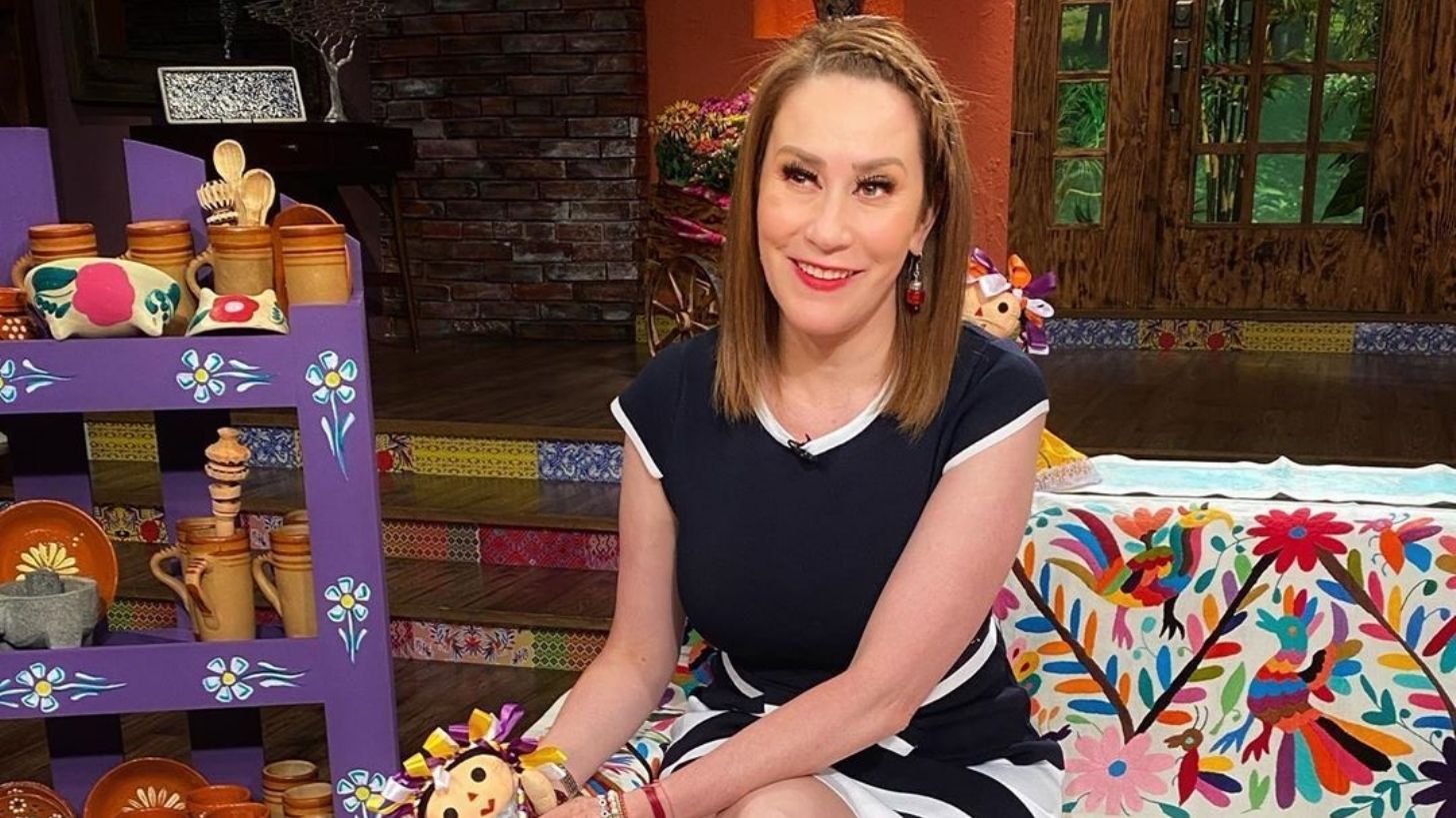 La conductora aprovechó la ocasión para presumir la decoración navideña en el set del programa de espectáculos conducido por Pati Chapoy, donde llevaba una falda hasta las rodillas, aparentemente de cuero y completamente abotonada con una camisa un poco suelta de color guinda, esta última prenda la hacía ver más cómoda y casual