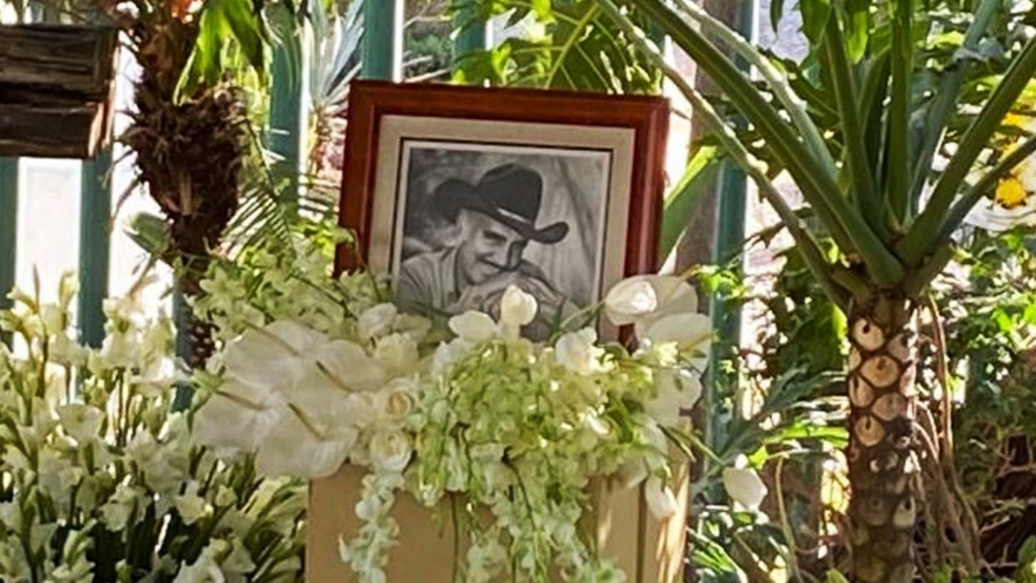 En imágenes compartidas por Suelta la Sopa, se observa que sobre el sepulcro del famoso se colocó infinidad de flores, así como una escultura en bronce de un charro montando a caballo que, se presume, es del propio astro de la música en su etapa joven.
