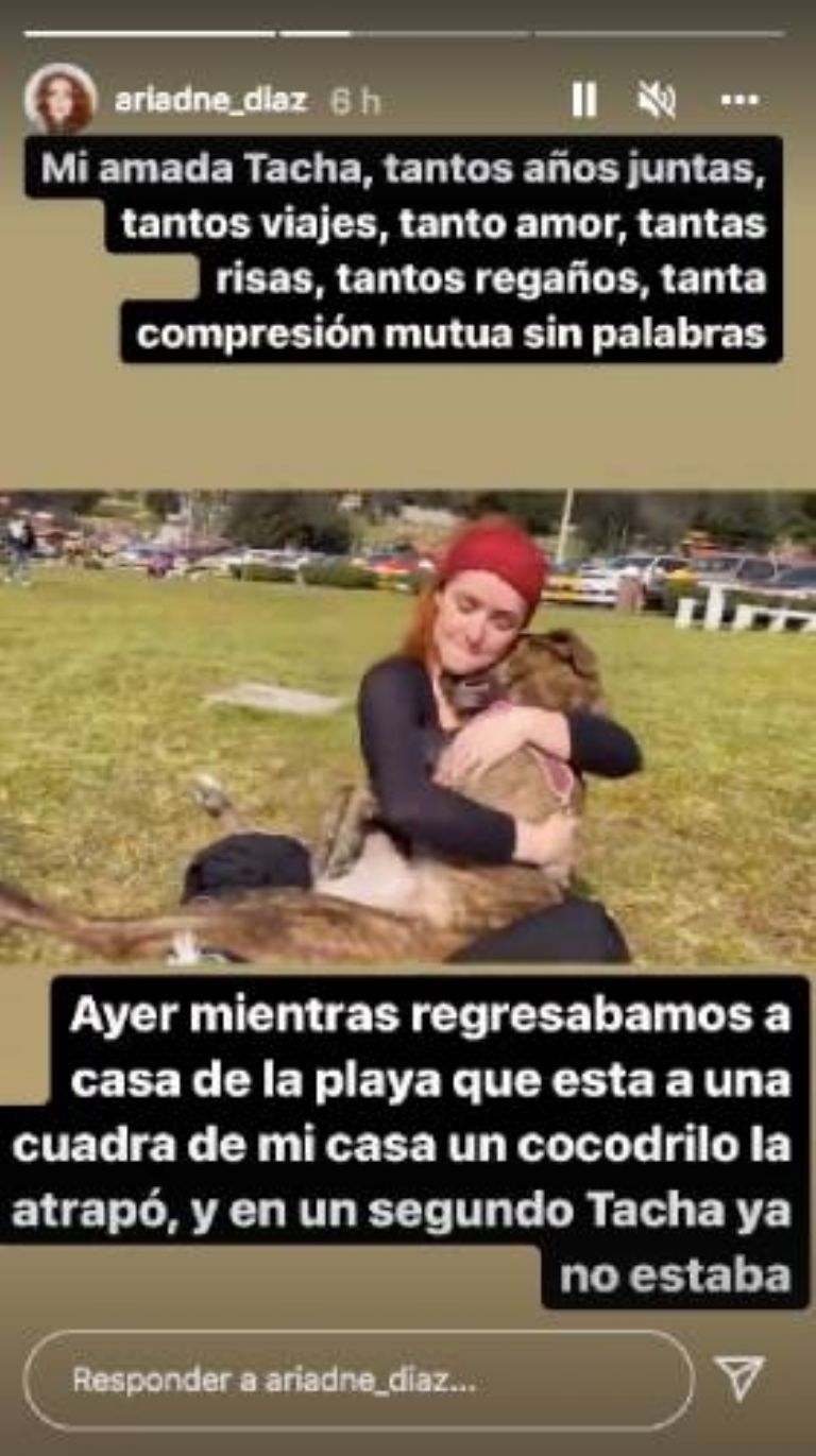 Junto a una imagen de su perrita cuando era una cachorra, la artista escribió que su mejor amiga fue atacada por un cocodrilo cerca de la playa, cuando ambas regresaban a casa.