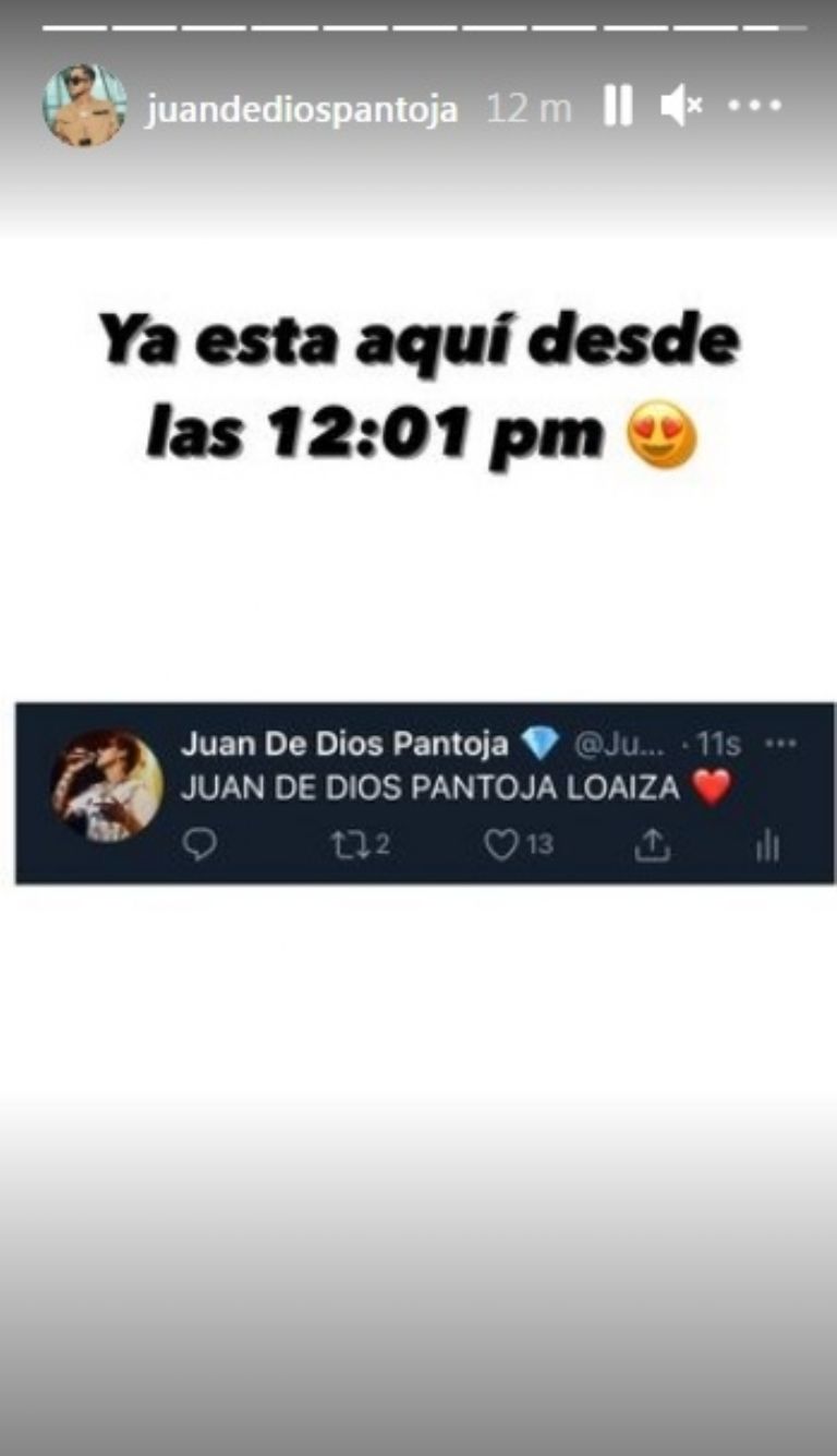 Sus millones de seguidores se sorprendieron ante la noticia, pues desde hace días se especulaba que en cualquier momento, la esposa de Pantoja iba a dar a luz a su segundo hijo. Por su parte, Juan De Dios reveló que su bebé nació a las 12:01 horas, acompañado de un emoji con ojos de corazón. El resto de sus historias de Instagram son referentes a su nuevo sencillo, Santa Paloma.