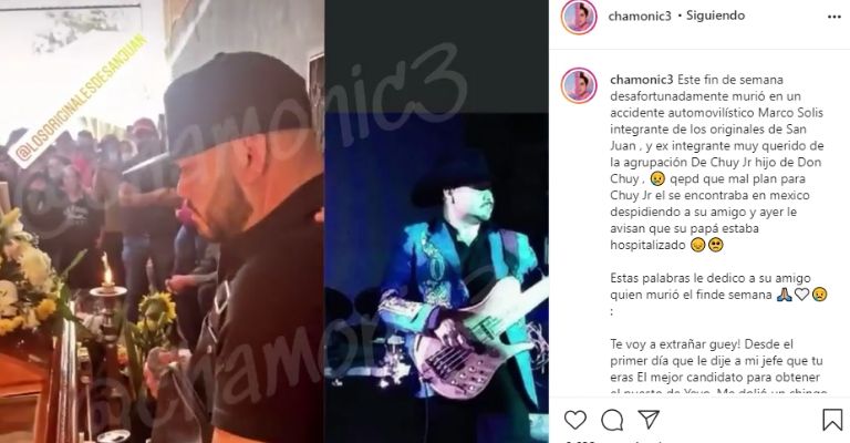 Chamonic compartió un desgarrador video del momento en que dan el último adiós a Solís en su funeral y un grupo de músicos interpreta un tema norteño para despedirse de Marco.