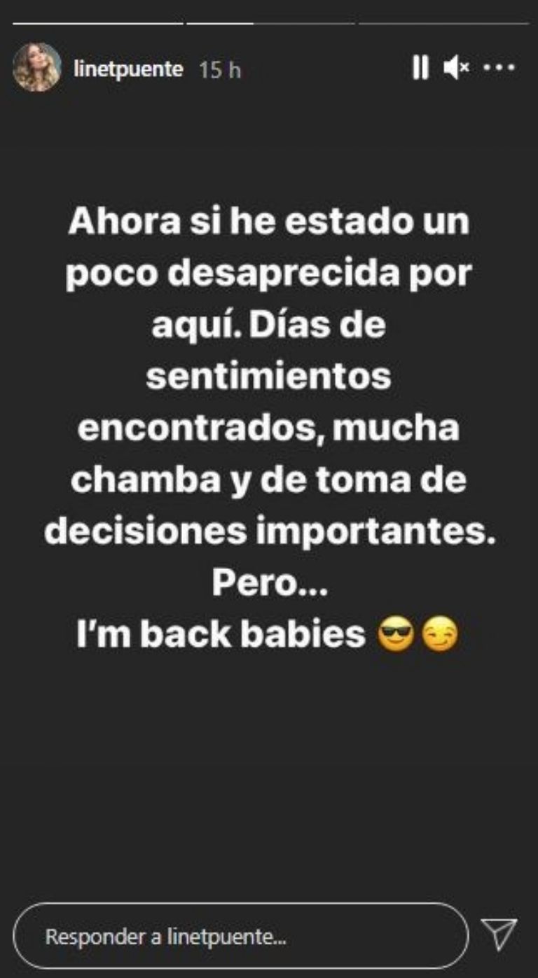 Pese a que Linet no reveló especialmente de que se trataba, sus seguidores ya han tenido las sospechas del posible regreso con su amado, pero será solo cuestión de tiempo para que sea ella misma quien lo confiese.