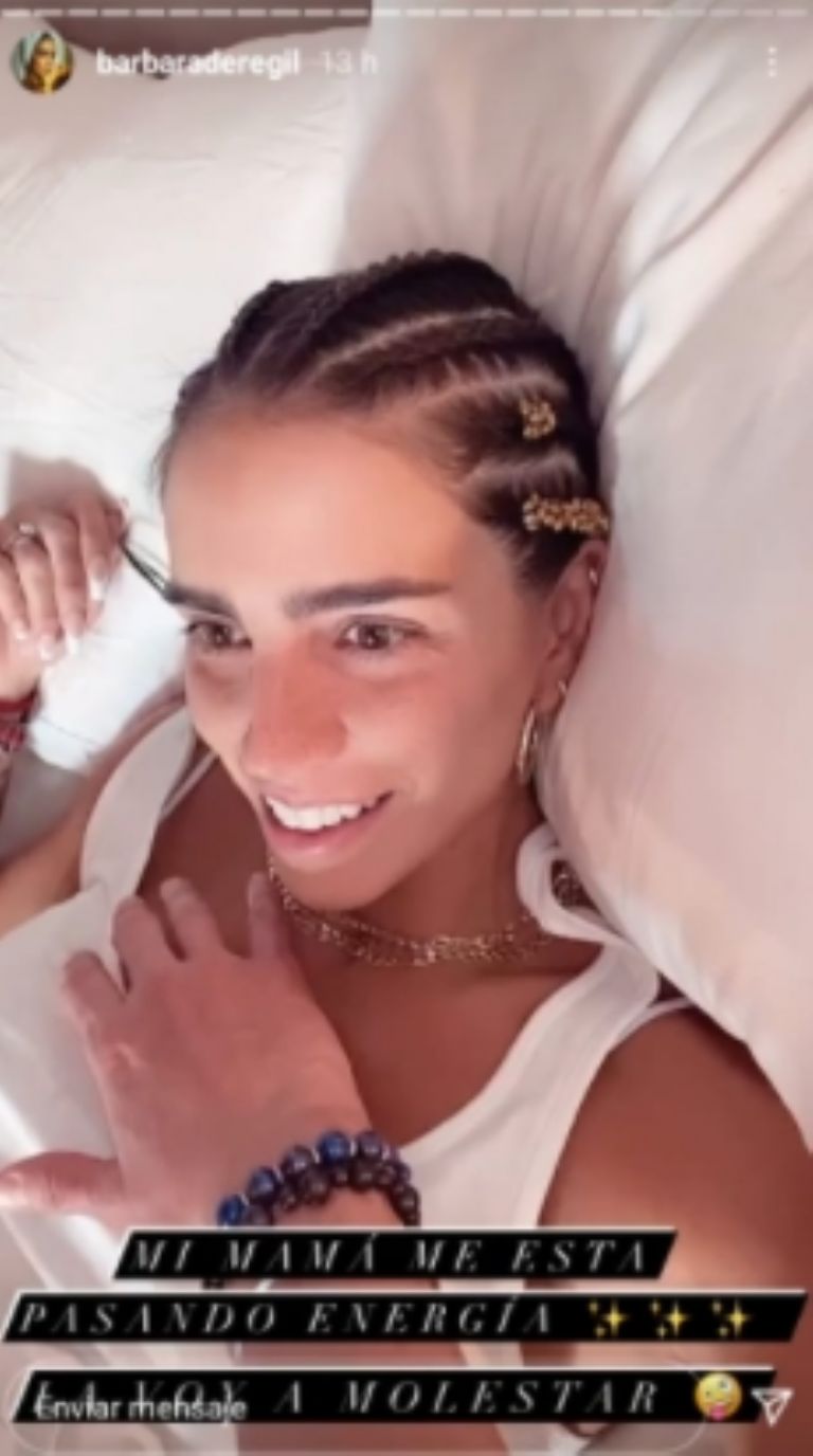 A través de sus historias de Instagram, Bárbara mostró el momento justo en el que su progenitora le pasa energía y muestra que la señora está muy concentrada en este momento de conexión.