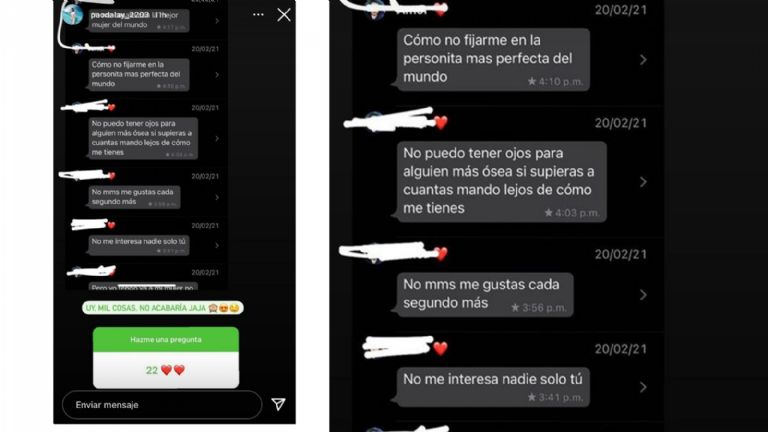 En una de sus instastories aparecía una captura de pantalla donde José Eduardo Derbez le declaraba su amor y asegura no tener ojos para nadie más e incluso lo mucho que le gusta la influencer.