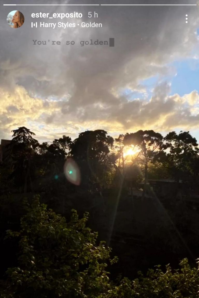 Al ritmo de Golden sonorizó un par de nubes y árboles bañadas en luz dorada, lo que daría una pista de las preferencias musicales de la actriz de Élite.