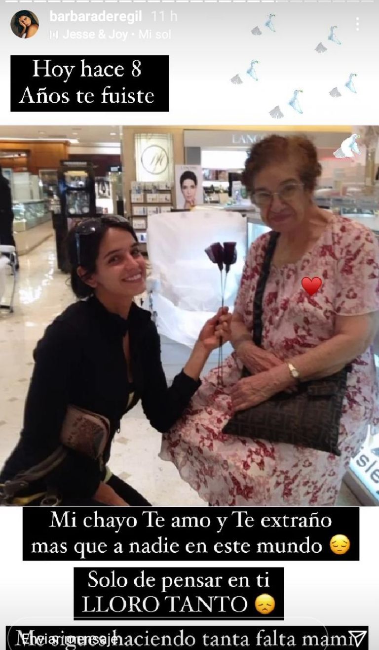 A través de sus historias de Instagram, Bárbara contó que se cumplen 8 años del doloroso fallecimiento de doña Chayo y no perdió la oportunidad de dedicarle un emotivo mensaje a quien fuera su persona favorita.