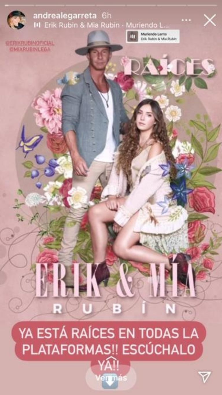 Tanto en sus historias de Instagram, como en su feed, hizo promoción de las canciones que la joven interpretó en compañía de la voz de su padre, el exvocalista de Timbiriche, Erick Rubín.