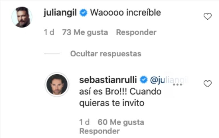 Rulli recibió buenos comentarios tras compartir estas imágenes, incluso el actor Julián Gil fue uno de los que se hicieron presentes al destacar que las fotos y los videos que el galán de Televisa compartió eran "increíbles".