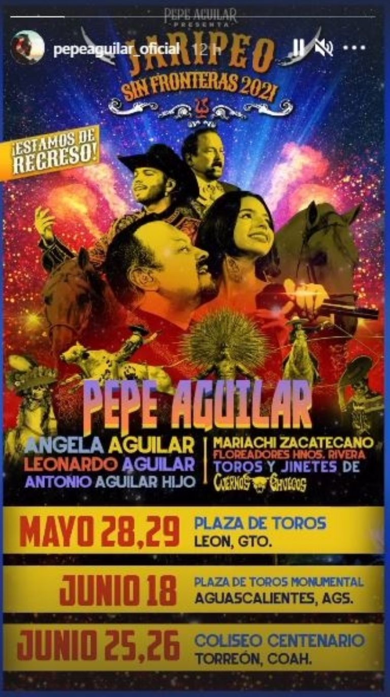 Ciudad de México.- La noche del pasado miércoles, Pepe Aguilar sorprendió a sus seguidores y los de sus hijos, pues se tomó el tiempo para revelar que este 2021 los tres volverán a los escenarios, tras más de un año en pausa por la contingencia sanitaria del Covid-19.