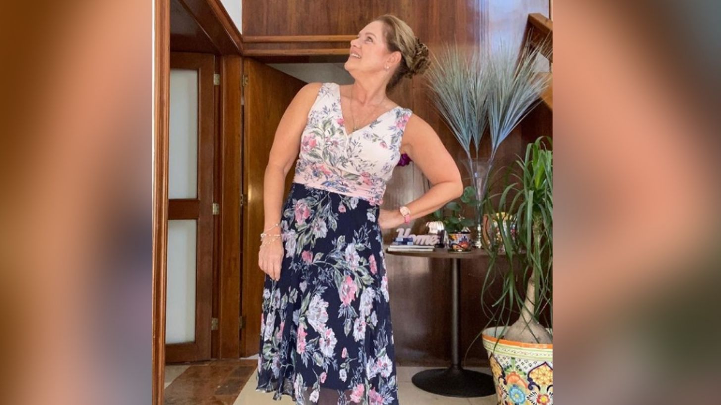 Buenfil compartió una foto desde su casa, mientras que modela un coqueto 'outfit' en la sala y subiendo las escaleras, consintiendo de a sus millones de seguidores que siempre esperan ver sus nuevas ocurrencias.