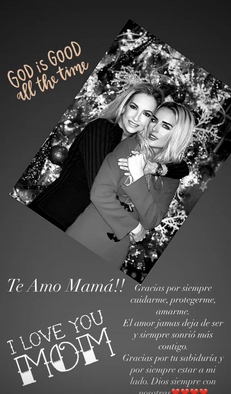 Te amo mamá... Gracias por siempre cuidarme, protegerme, amarme... El amor jamás deja de ser y siempre sonrío más contigo... Gracias por tu sabiduría y por siempre estar a mi todo. Dios siempre con nosotras", escribió.
