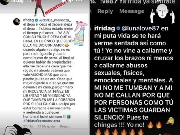 En mi pu... vida se te hará verme sentada así como tú. Yo no vine a callarme y a cruzar los brazos, ni menos a callarme abusos sexuales, físicos, emocionales y mentales. A mí no me tumban, a mi no me callan porque, por personas como tú, las víctimas guardan silencio. Pues te chin... yo no", escribió.