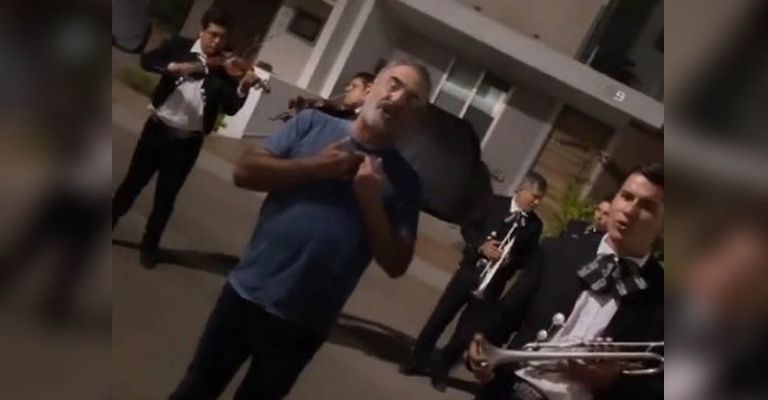 La empresaria compartió en su cuenta de Instagram un video en el que se le ve dando una serenata, pero con una apariencia completamente distinta a la que él usa, ya que su barba y caballera se ven un tanto descuidadas e incluso hasta con vestimenta informal.