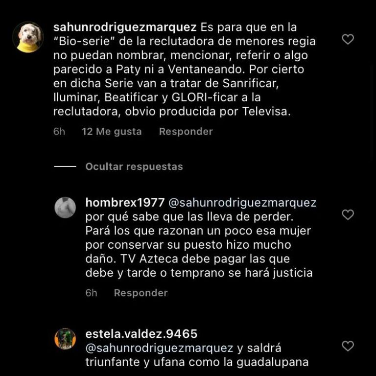 Sin embargo, dentro de los comentarios hubo quienes señalaron que se trata de un acuerdo para que la imagen de la Chapoy no aparezca en la bioserie de la cantante Gloria Trevi que se está preparando.