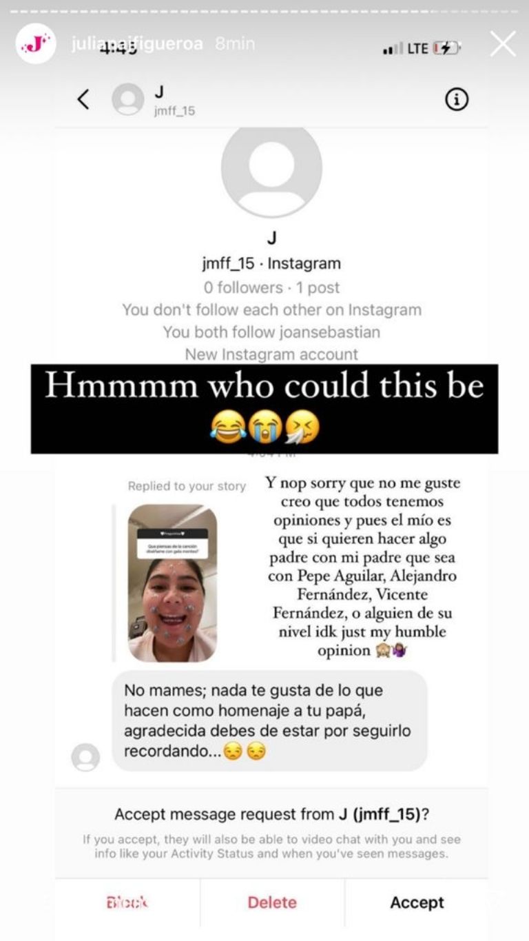 A través de Instagram, los seguidores de Juliana le preguntaron si le había gustado el tema a lo que ella respondió que no, consiguiendo que algunos de los internautas se molestaran y le dijeran que debía estar agradecida con lo que le hacen a su padre para seguirlo recordando, pero no imaginaron lo que ella diría.
