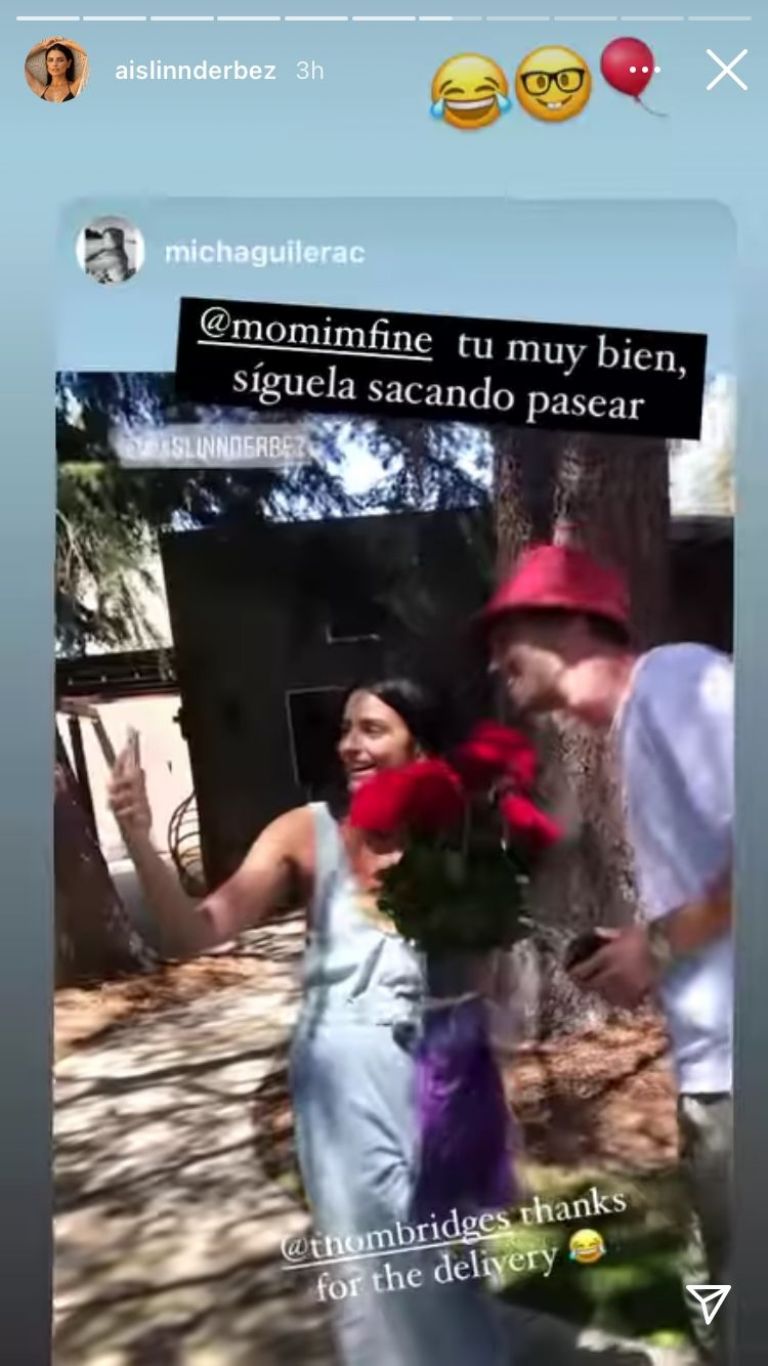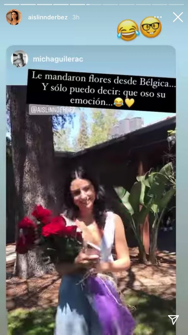 Por medio de sus historias de Instagram, su hermana Michelle Aguilera, hija de la madre de Ais y del señor Alberto Aguilera, compartió un par de videos en los que se ve a la hija de Eugenio Derbez muy feliz recibiendo el hermoso detalle.
