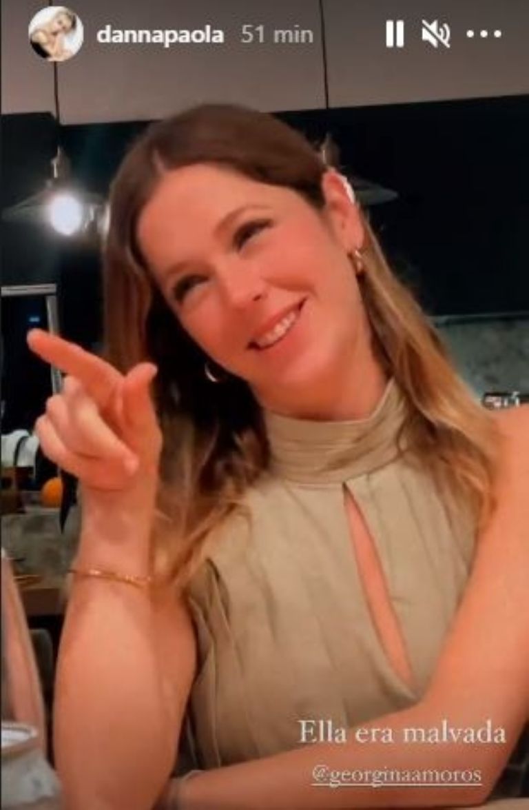 En el video gif en el que aparece Georgina se puede ver una nota en la que Danna hace referencia al personaje de la actriz, en ella se puede leer: "Ella era malvada".