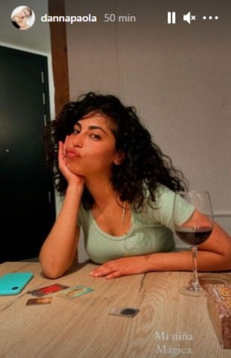 En la siguiente historia se puede ver a María posando con una copa de vino a lado de ella, en la nota Danna expresa el gran cariño que siente hacía ella: "Mi niña mágica, más buena que el pan".