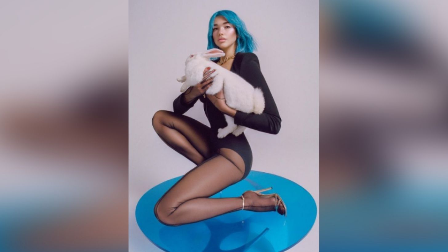 Dua hace un par de horas mostró su radical cambió, pues su oscura melena pasó a ser una mucho más llamativa y vibrante, ya que ahora es completamente de un azul eléctrico, la cual mostró mientras posaba con un revelador traje de una enloquecedora forma.