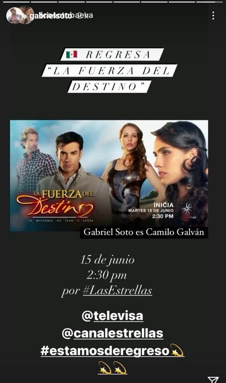 Este último fue quien compartió mediante sus historias que el exitoso melodrama del 2011 volverá a transmitirse por el canal de Las Estrellas el 15 de junio en el horario del 14:30 horas.