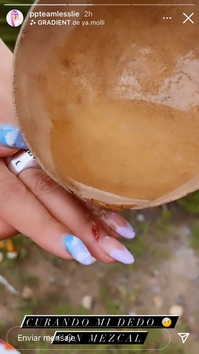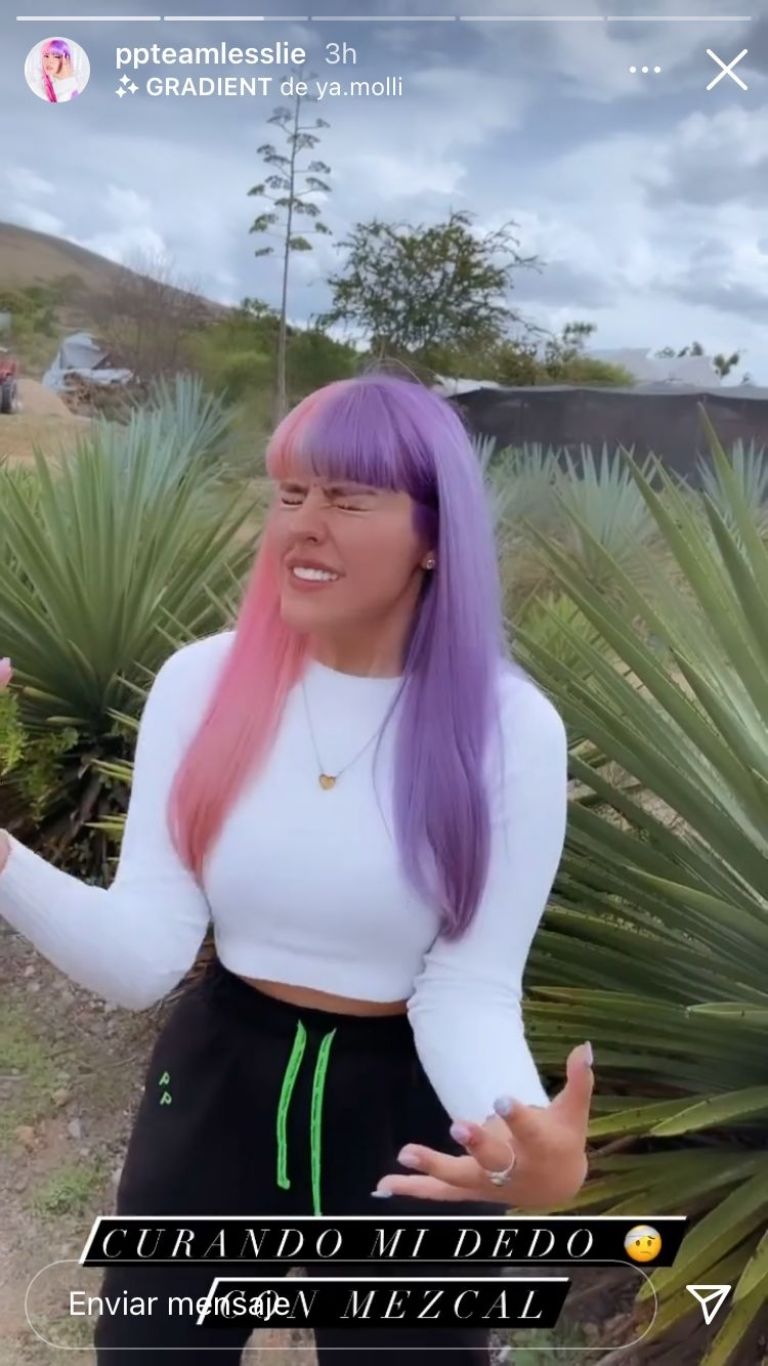 En su breve video que la joven con el cabello de colores publicó en sus historias de Instagram se vio que su dedo medio resultó afectado, pues la piel en él estaba abierta y de él se desprendía un poco de sangre.