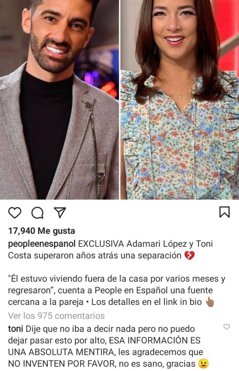 Ciudad de México.- Aunque Toni Costa afirmó que no volvería a dar declaraciones sobre su separación de Adamari López, el conocido bailarín tuvo que salir a las redes sociales para desmentir las polémicas y versiones que surgieron tras confirmar su ruptura.