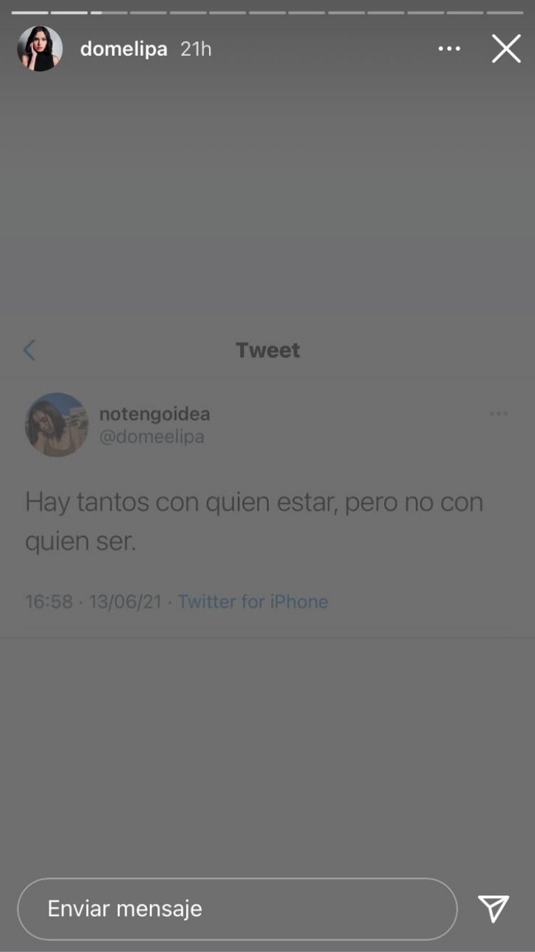 Uno de los textos que capturó la atención de sus fans y detonó sospechas fue en el que se leía: "Hay tantos con quien estar, pero no con quien ser".