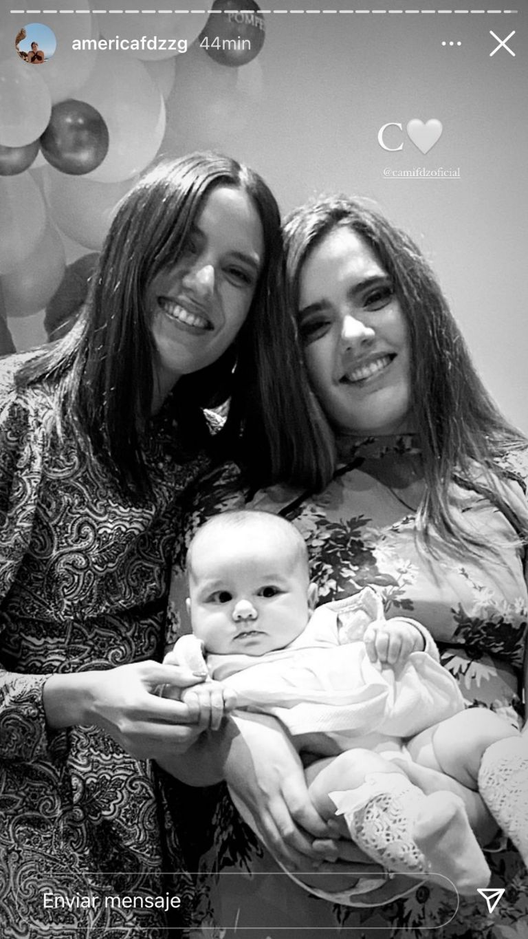 Seguido de esto, América Fernández la melliza de Cami lanzó una imagen más en la que las dos se muestran fascinadas con la compañía de la bebé que al parecer disfrutó al máximo su primera fiesta.