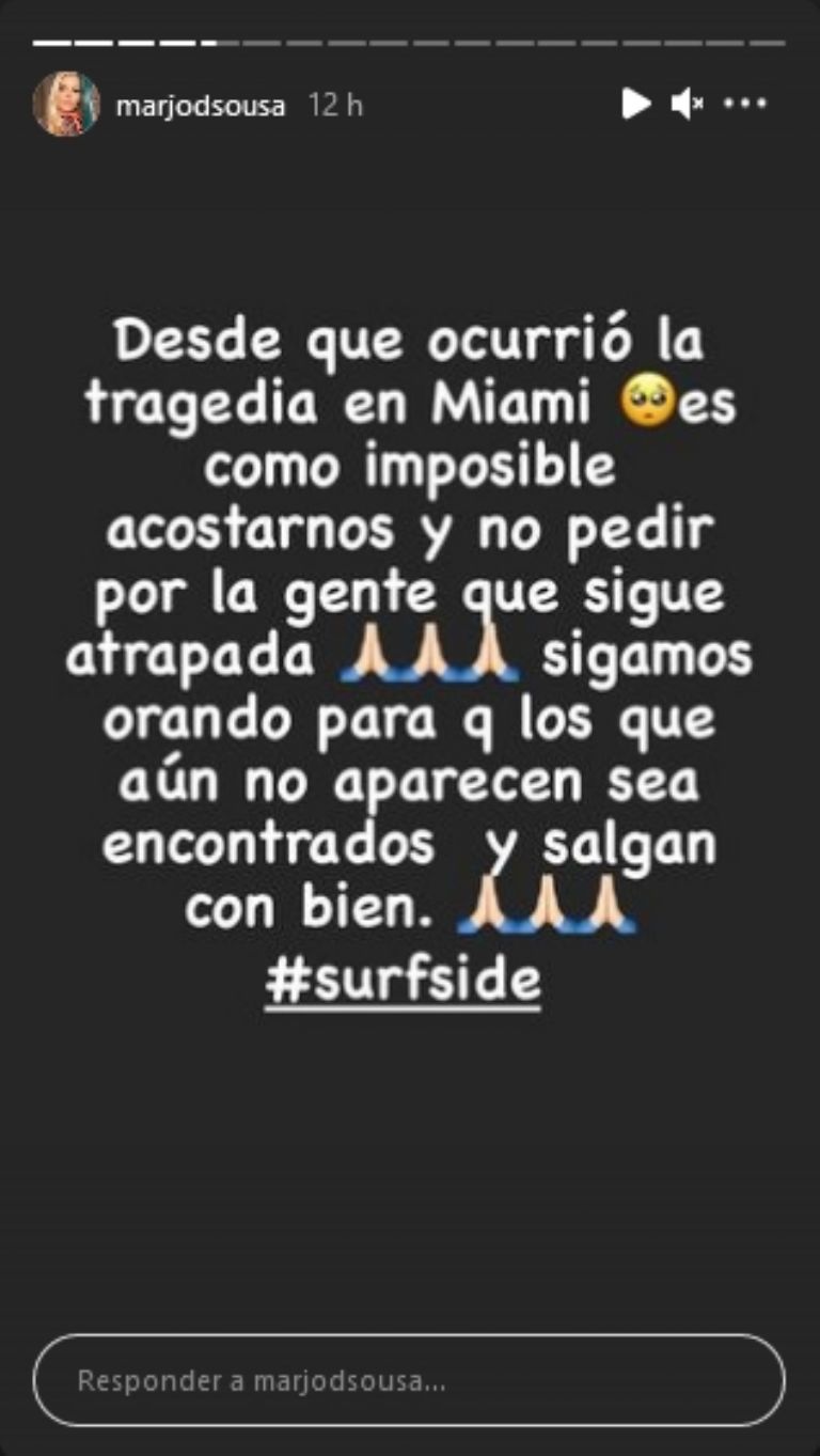 Desde que ocurrió la tragedia en Miami es como imposible acostarnos y no pedir por la gente que sigue atrapada, sigamos orando para que los que aún no aparecen sean encontrados y salgan con bien".