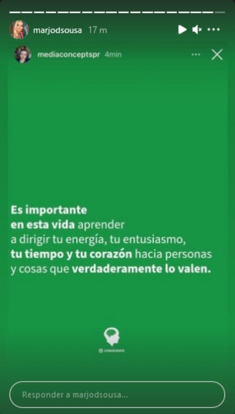 Momentos más tarde, de Sousa replicó con un pensamiento: "Es importante en esta vida aprender a dirigir tu energía, tu entusiasmo, tu tiempo y corazón hacia personas y cosas que verdaderamente lo valen".