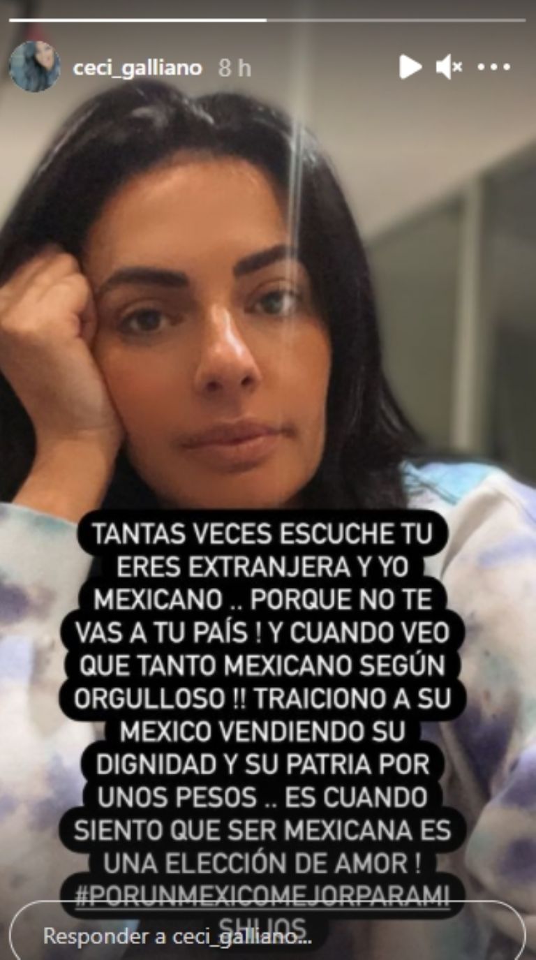Tantas veces escuché 'tú eres extranjera y yo mexicano... por qué no te vas a tu país' y cuando veo que tanto mexicano según orgulloso vendiendo su dignidad y su patria por unos pesos, es cuando siento que ser mexicana es una elección de amor #porunmexicomejorparamishijos", escribió la estrella de Televisa.