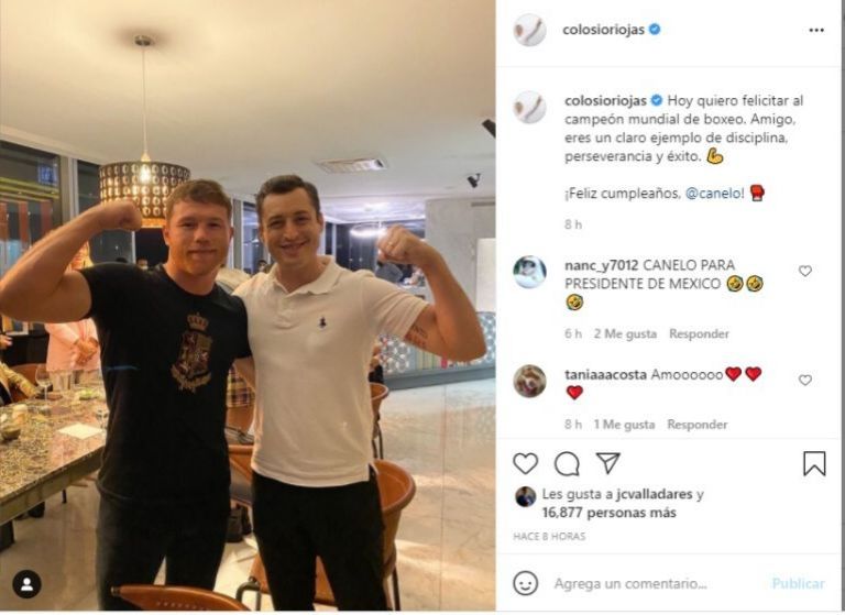 Hoy quiero felicitar al campeón mundial de boxeo. Amigo, eres un claro ejemplo de disciplina, perseverancia y éxito. ¡Feliz cumpleaños, @canelo!", escribió.