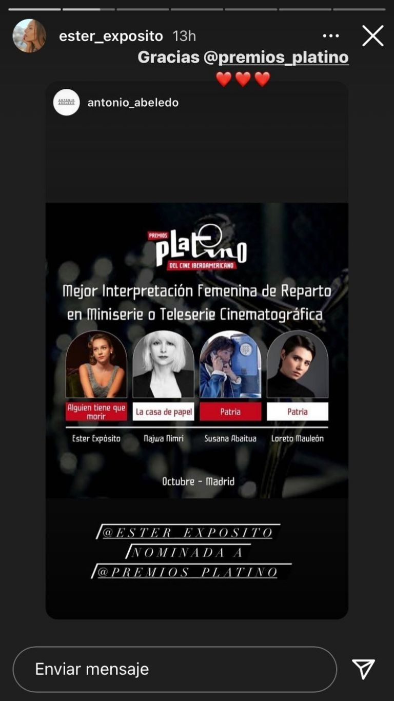 Varios años de crecimiento profesional le brindaron la oportunidad de adornar su vitrina con un trofeo, por el cual competirá contra Nawja Nimri, quien participó en La casa de papel.
