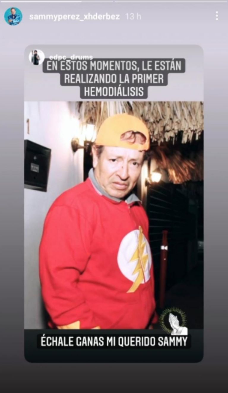 En estos momentos le están realizando la primer hemodiálisis... échale ganas mi querido Sammy", escribió en las historias.