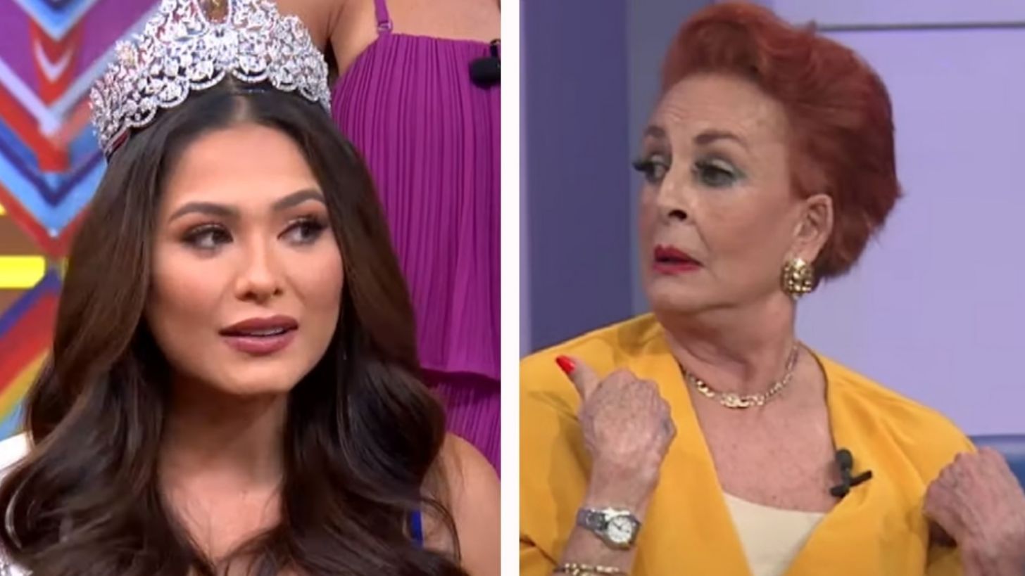 Andrea fue recibida por todos los conductores en el set de Sale el Sol, pero tan solo se colocaron cuatro sillas. Como la 'Dama del Buen Decir' no puede estar tanto tiempo de pie, se sentó en el reposabrazos de un sofá y quedó muy cerca de la reina de belleza.