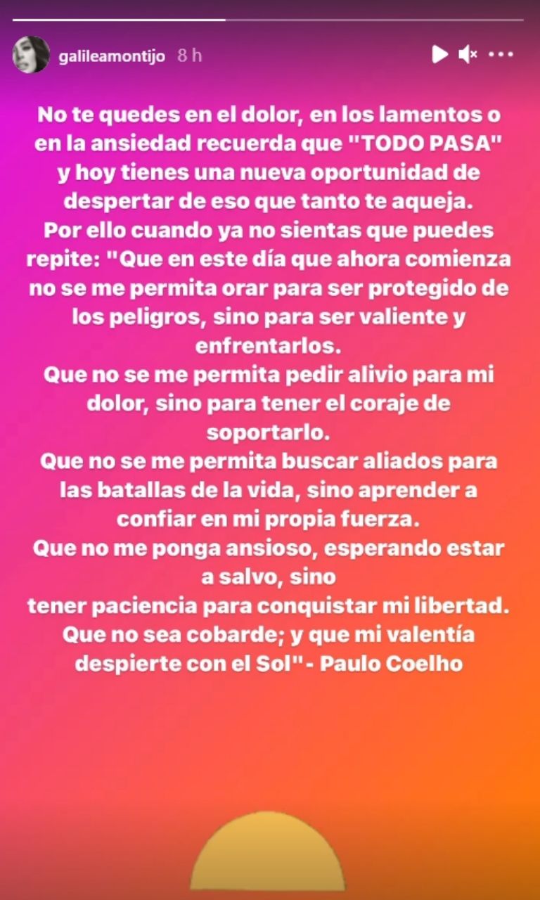 Al parecer, Galilea aún no logra superar esta pérdida pues durante la mañana de este martes escribió un duro y fuerte mensaje a través de sus historias de Instagram.