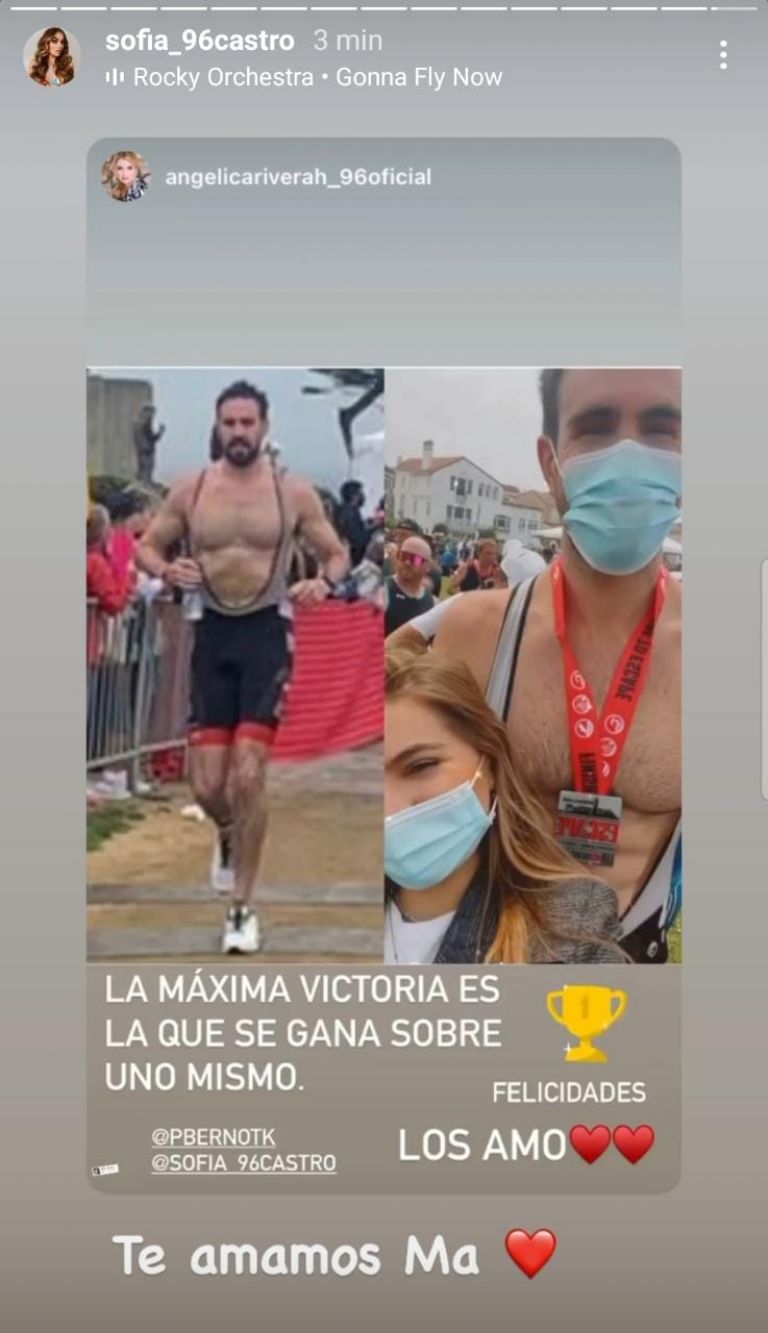 Resulta que Rivera publicó en sus historias una felicitación para Pablo Bernot, el novio de su hija la actriz Sofía Castro, quien este domingo participó en un triatlón en San Francisco, Estados Unidos.