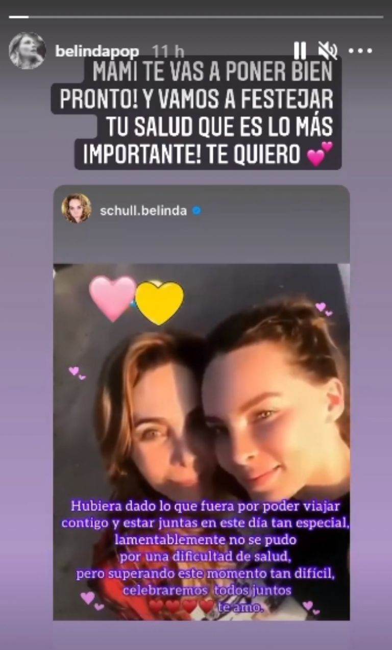Hace unas horas tanto Belinda como Schüll confirmaron que la señora sí está enferma pero no detallaron que sea coronavirus, sin embargo, sí explicaron que se encuentran separadas.