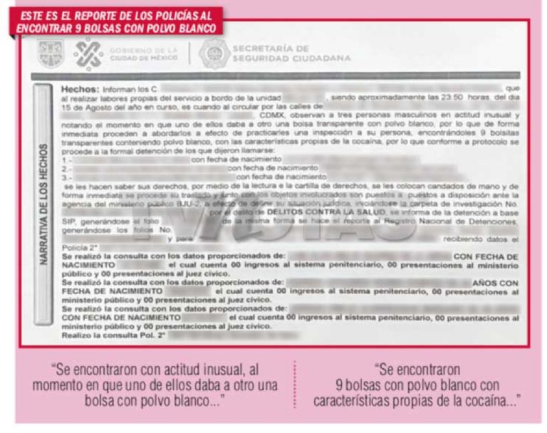 Se los llevaron a la alcaldía Benito Juárez en calidad de detenidos por posesión de droga, delitos contra la salud y por un posible homicidio (...) Porque les encontraron bolsas pequeñas con polvo blanco, que al parecer era cocaína".