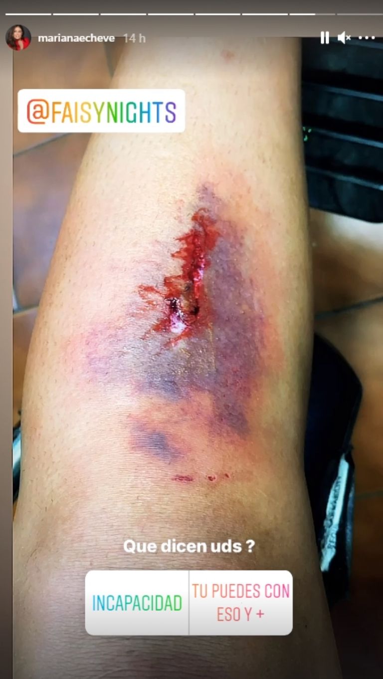 A través de sus historias de Instagram, la conductora de Televisa reveló que se sentía muy adolorida luego de la brutal caída y explicó que ella creyó que necesitaría sutura pero no fue necesario. Además compartió una fotografía en la que muestra el enorme moretón y la dolorosa herida que le dejó este peligroso accidente.