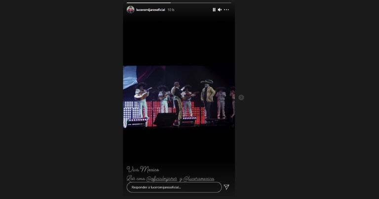 En la instantánea, Lucero y Mijares están sobre un escenario, cantando juntos mientras Manuel juega con el sombrero de charro que lleva la también actriz en su vestuario.