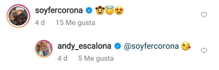 Si bien Álex no escribió el nombre de Escalona, sus lectores de inmediato notaron que está hablando de ella y del cantante Fer Corona, pues ellos mismos han desatado rumores de un noviazgo debido a los amorosos mensajes que intercambian en las redes sociales.