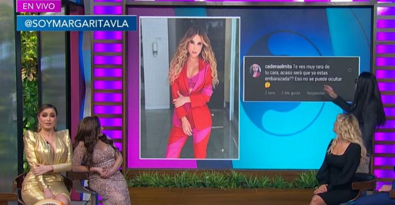 Luego de leer el comentario, 'Margarita' bromeó con que la cantante originaria de Monclova sí espera a su primer hijo y se acercó al vientre de la mujer: