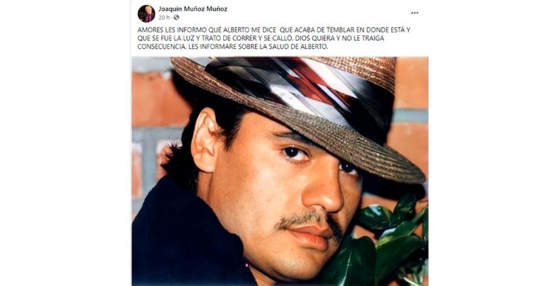 Amores les informo que Alberto me dice que acaba de temblar en donde está y que se fue la luz y trató de correr, y se cayó. Dios quiera y no le traiga consecuencia, les informaré sobre la salud de Alberto", escribió.